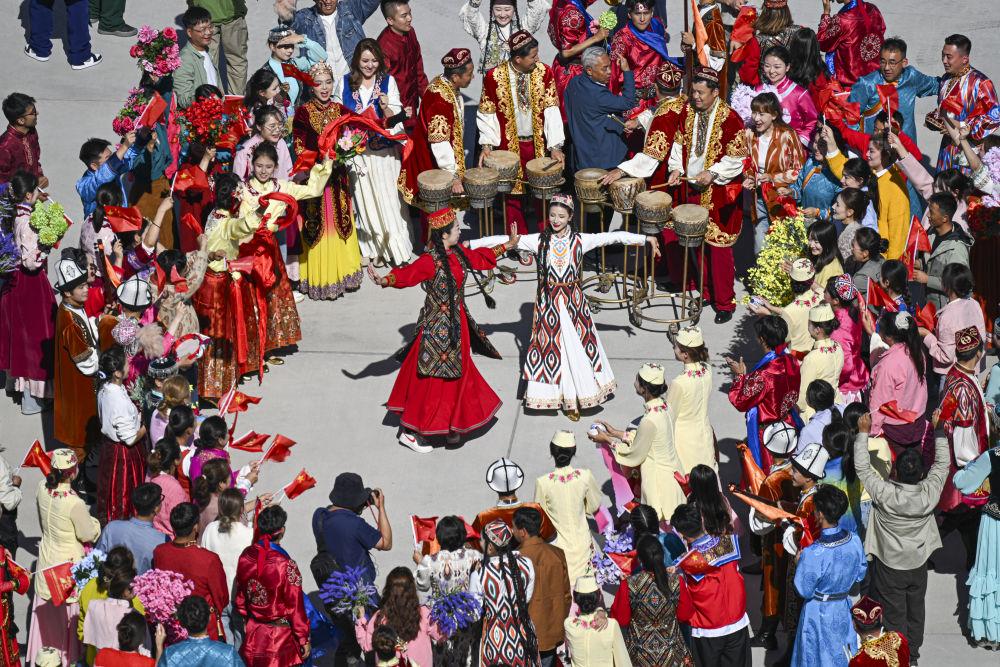 新華社記者的鏡頭里,各族兒女簇擁在一起,歡笑在一起;明艷的服飾、熱烈的歌舞,無不展現(xiàn)出團結(jié)與奮進的力量。