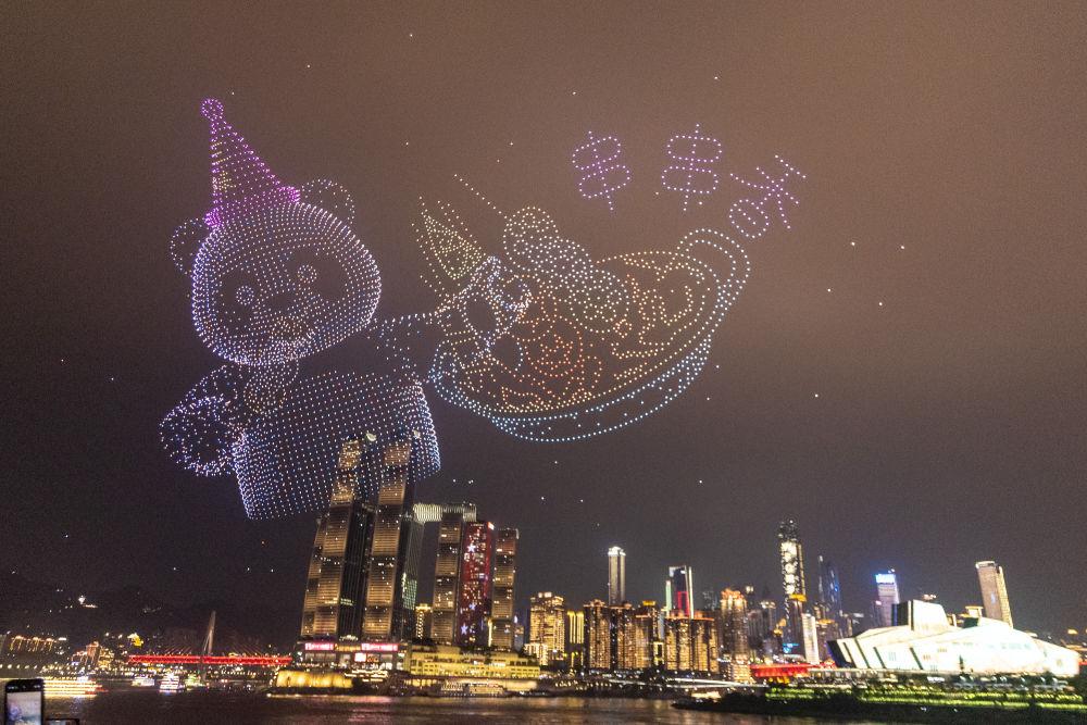 2025年10月2日晚在重慶市南岸區(qū)南濱路拍攝的無人機(jī)燈光秀。國慶假期,重慶憑借立體的城市景觀、豐富的旅游業(yè)態(tài)以及不斷創(chuàng)新的消費(fèi)場景等,吸引游客前來旅游、體驗(yàn),假期消費(fèi)市場活力十足。自2025年4月19日起,重慶在每周六和重大節(jié)假日開展無人機(jī)燈光秀常態(tài)化展演,為了常演常新,創(chuàng)作團(tuán)隊(duì)根據(jù)節(jié)點(diǎn)設(shè)計(jì)無人機(jī)圖案,不斷推出文旅、美食、非遺等系列題材。截至2025年9月17日,無人機(jī)燈光秀已演出26場,現(xiàn)場累計(jì)觀演人次超400萬。展演期間,核心觀演區(qū)沿線餐飲門店座無虛席,平均滿客率超70%,“重慶無人機(jī)表演餐廳”網(wǎng)絡(luò)搜索量同比上漲285%。