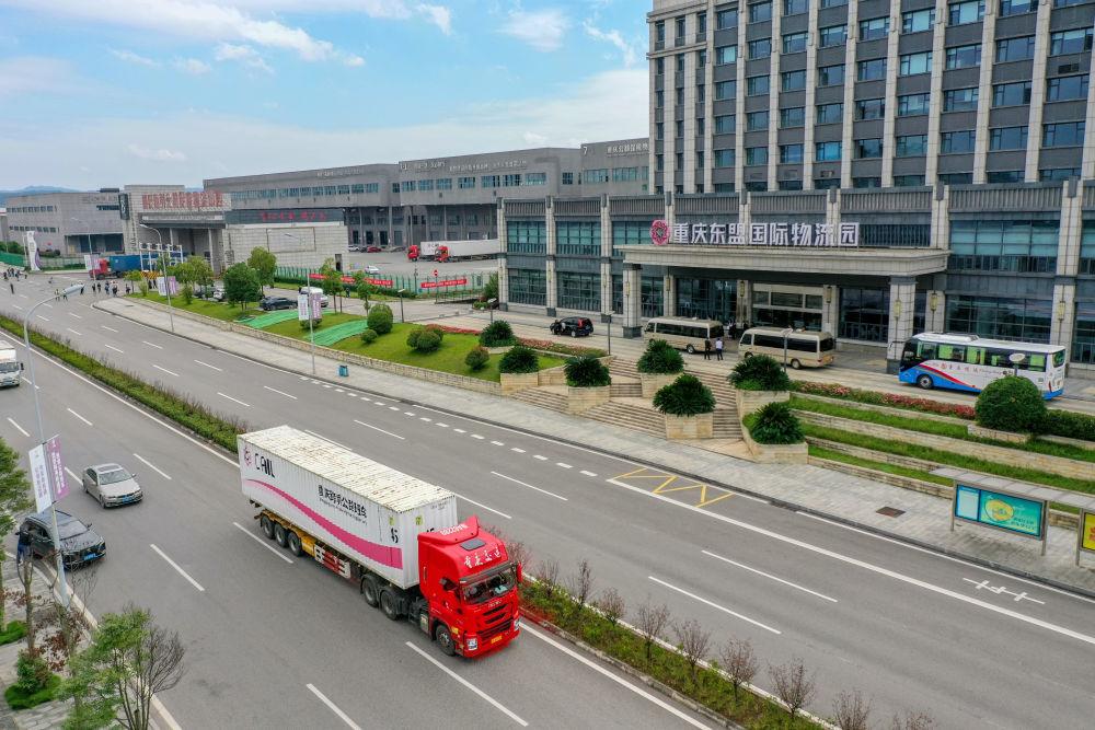 2023年10月11日,滿載筆記本電腦配件、發(fā)電機(jī)組件等產(chǎn)品的西部陸海新通道跨境公路班車從重慶南彭公路保稅物流中心駛出,途經(jīng)廣西憑祥,直達(dá)越南(無(wú)人機(jī)照片)。