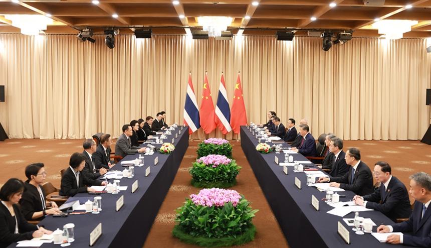習(xí)近平強調(diào),不久前,中共二十屆四中全會成功召開,審議通過了“十五五”規(guī)劃建議。中方愿同泰方加強發(fā)展戰(zhàn)略對接,分享新時代中國的發(fā)展經(jīng)驗。雙方要加快中泰鐵路建設(shè),加強農(nóng)產(chǎn)品貿(mào)易、綠色經(jīng)濟、數(shù)字創(chuàng)新等合作,讓兩國人民有更多獲得感。深化旅游、青年、地方等人文交流,辦好建交50周年慶祝活動,促進民心相通。要加大打擊網(wǎng)賭電詐等跨境犯罪力度,為兩國交往和合作營造安全環(huán)境。面對變亂交織的國際形勢,中方愿同泰方一道推動落實全球治理倡議,維護國際公平正義,維護全球南方共同利益。