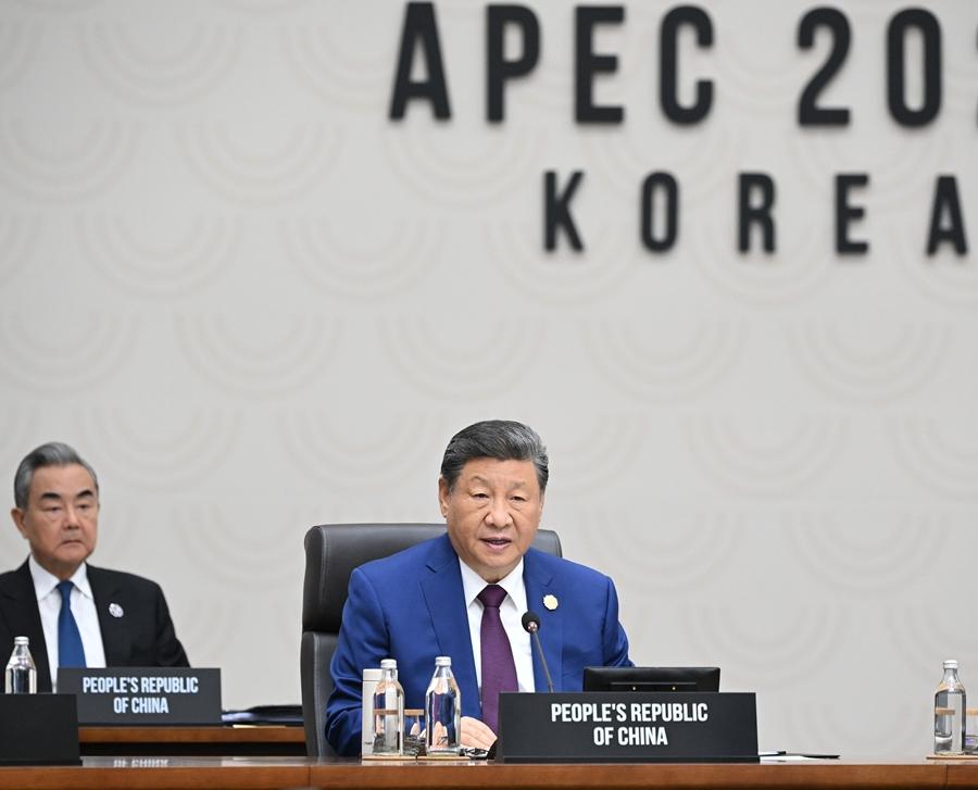 當(dāng)?shù)貢r(shí)間11月1日上午,國(guó)家主席習(xí)近平在韓國(guó)慶州出席亞太經(jīng)合組織第三十二次領(lǐng)導(dǎo)人非正式會(huì)議第二階段會(huì)議,并發(fā)表題為《共同開創(chuàng)可持續(xù)的美好明天》的重要講話。新華社記者 謝環(huán)馳 攝