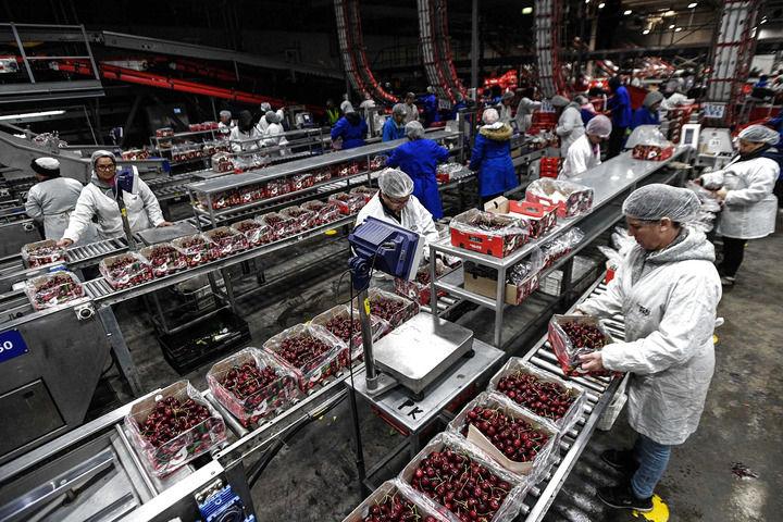 在智利莫斯塔薩爾的一座吉制公司工廠,工作人員處理車?yán)遄樱?024年12月13日攝)。新華社發(fā)(豪爾赫·比列加斯攝)