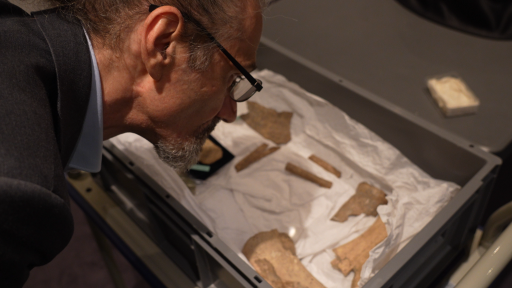 法國賽努奇博物館珍藏著15片甲骨。中國研究團(tuán)隊帶來高清攝影設(shè)備,從48個角度打光,為每一枚甲骨片留下96張照片?!拔覀兒芨吲d參與這一項目。這對中國文明史很重要,對世界文明史同樣重要?!辟惻娌┪镳^館長埃里克·勒菲弗說。