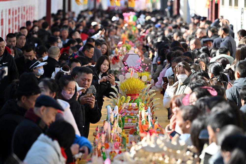 人們在山西省呂梁市嵐縣嵐城鎮(zhèn)欣賞面塑作品(2025年3月18日攝)。新華社記者 詹彥 攝