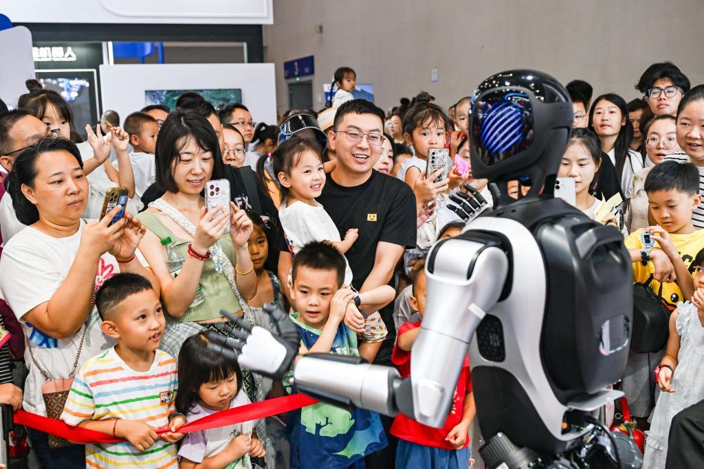 9月7日,觀眾在智博會上參觀人形機器人。新華社記者王全超攝