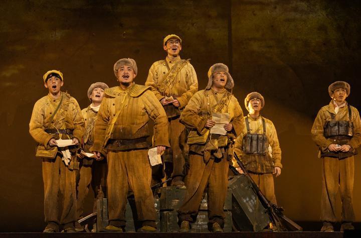 這是音樂(lè)劇《尋找李二狗》的演出劇照(2025年4月7日攝)。該劇以抗美援朝偉大歷史為背景,取材自志愿軍第39軍116師真實(shí)故事,通過(guò)當(dāng)代青年常衛(wèi)國(guó)借助爺爺?shù)幕貞涗洿┰交?950年鴨綠江畔的舞臺(tái)設(shè)定,展開(kāi)兩代青年的跨時(shí)空對(duì)話。2025年11月,該劇榮獲第十八屆文華劇目獎(jiǎng)。