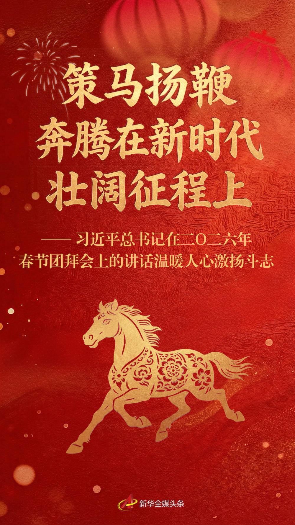 原標(biāo)題:策馬揚鞭 奔騰在新時代壯闊征程上——習(xí)近平總書記在二〇二六年春節(jié)團(tuán)拜會上的講話溫暖人心激揚斗志