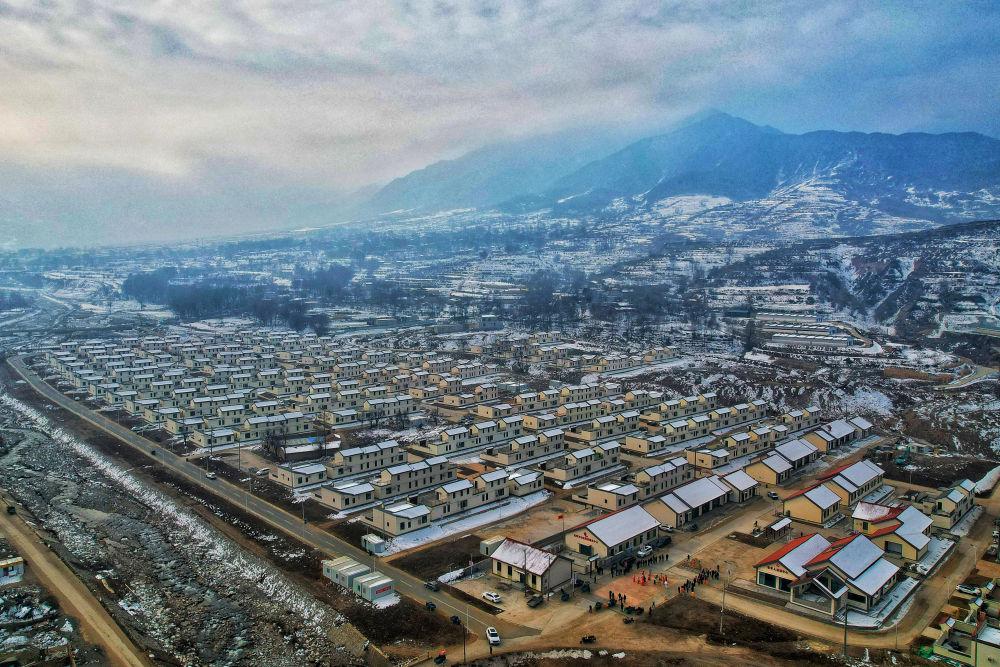 這是甘肅省臨夏回族自治州積石山縣劉集鄉(xiāng)劉集村集中安置點(diǎn)(2024年12月6日攝,無(wú)人機(jī)照片)。新華社發(fā)(張維吉 攝)