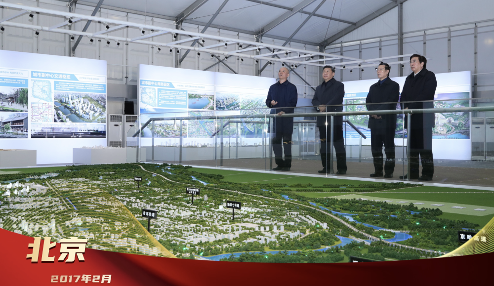 2017年2月24日,習(xí)近平總書記在北京城市副中心行政辦公區(qū)建設(shè)現(xiàn)場指揮部察看規(guī)劃沙盤,了解副中心建設(shè)理念、目標(biāo)定位、文化保護等情況。創(chuàng)新為要、“瓣瓣同心”,總書記的戰(zhàn)略擘畫,引領(lǐng)京津冀協(xié)同發(fā)展走深走實。