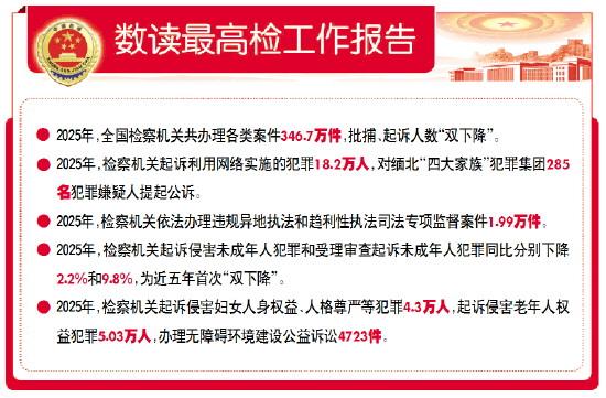 【解讀】“‘強(qiáng)化檢察監(jiān)督’是貫穿報告始終的一條主線?!睏顒Σń榻B說,持續(xù)提升法律監(jiān)督質(zhì)效,推動刑事、民事、行政、公益訴訟“四大檢察”全面協(xié)調(diào)充分發(fā)展。2025年,最高檢為精準(zhǔn)監(jiān)督趨利性執(zhí)法司法問題,逐步建立了一套從線索發(fā)現(xiàn)、線索研判到督辦交辦、辦結(jié)反饋的全流程機(jī)制。截至2025年12月,最高檢、省級檢察院督辦重點(diǎn)案件505件。在推進(jìn)專項(xiàng)監(jiān)督中,注重監(jiān)督糾正經(jīng)營主體和人民群眾反映強(qiáng)烈的突出問題,注重從制度機(jī)制層面剖析根源、堵住漏洞,推動實(shí)現(xiàn)標(biāo)本兼治,鞏固深化監(jiān)督成果。研究起草依法加強(qiáng)刑事訴訟查封、扣押、凍結(jié)等強(qiáng)制措施監(jiān)督工作的規(guī)范性文件,建立健全加強(qiáng)跨省涉企刑事案件法律監(jiān)督機(jī)制,努力從源頭上推動解決違規(guī)異地執(zhí)法和趨利性執(zhí)法司法問題。