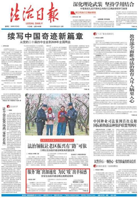 在這里,法治之光溫暖可感,為民之心細(xì)微可見。吉安以法治為筆,書寫著潤物無聲、貼心暖心的民生答卷。