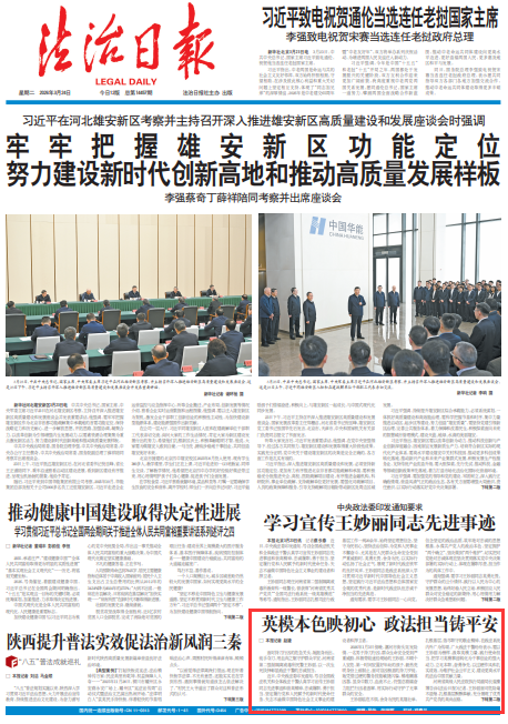 近日,中央政法委印發(fā)通知,號召全國政法機(jī)關(guān)和全體政法干警認(rèn)真學(xué)習(xí)宣傳王妙麗同志先進(jìn)事跡和崇高精神,忠誠履職,勇于擔(dān)當(dāng),堅定履行黨和人民賦予的新時代使命任務(wù),矢志不渝做中國特色社會主義事業(yè)的建設(shè)者和捍衛(wèi)者。