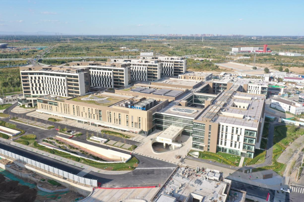 2023年6月30日,中共中央政治局召開會(huì)議,審議《關(guān)于支持高標(biāo)準(zhǔn)高質(zhì)量建設(shè)雄安新區(qū)若干政策措施的意見》。此后,一攬子特殊支持政策陸續(xù)落地雄安新區(qū)。2023年10月16日,雄安宣武醫(yī)院開診。首都醫(yī)科大學(xué)宣武醫(yī)院派來(lái)管理團(tuán)隊(duì)及骨干醫(yī)生,重點(diǎn)服務(wù)疏解人員和新區(qū)群眾,并輻射京津冀地區(qū)。這是2023年9月30日拍攝的雄安宣武醫(yī)院(無(wú)人機(jī)照片)。