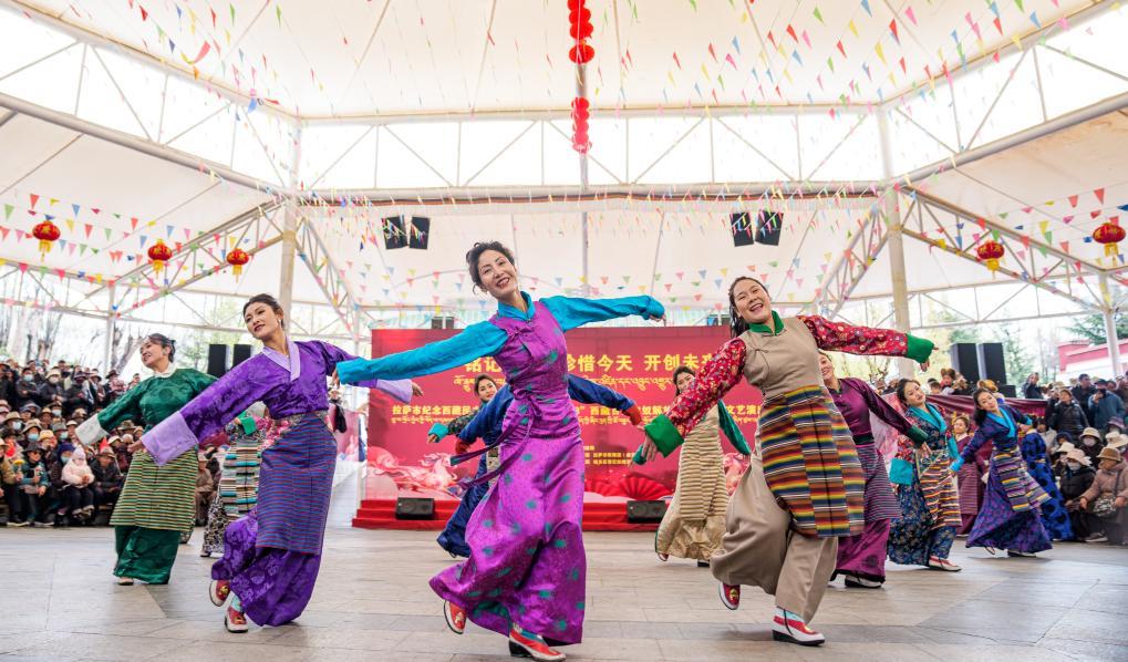 28日當(dāng)天,西藏各地同步舉行升國旗、唱國歌、文藝匯演、新舊西藏對比宣講等活動,熱烈慶祝百萬農(nóng)奴解放紀念日。在昌都市邊壩縣,獨唱、合唱歌聲嘹亮,從稚氣未脫的學(xué)生到樸實勤勞的農(nóng)牧民,大家紛紛登臺表演,講述紅色故事?!澳苡酶杪暢鑫覀兊男腋I?,唱出對黨的感恩之情,心里特別自豪?!鞭r(nóng)牧民代表尼瑪說。