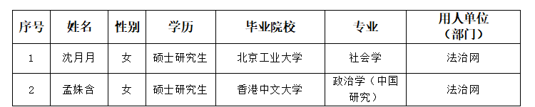 以上擬錄用人員公示期為5個工作日,公示期自2026年4月1日至2026年4月8日。如對以上公示人員有異議,請致電法治日報社人力資源部。