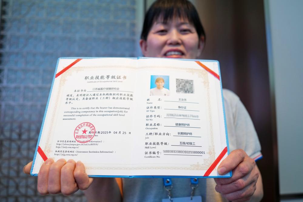 2025年4月28日,首批長期照護師職業(yè)技能等級證書頒發(fā)。新華社記者 李博 攝