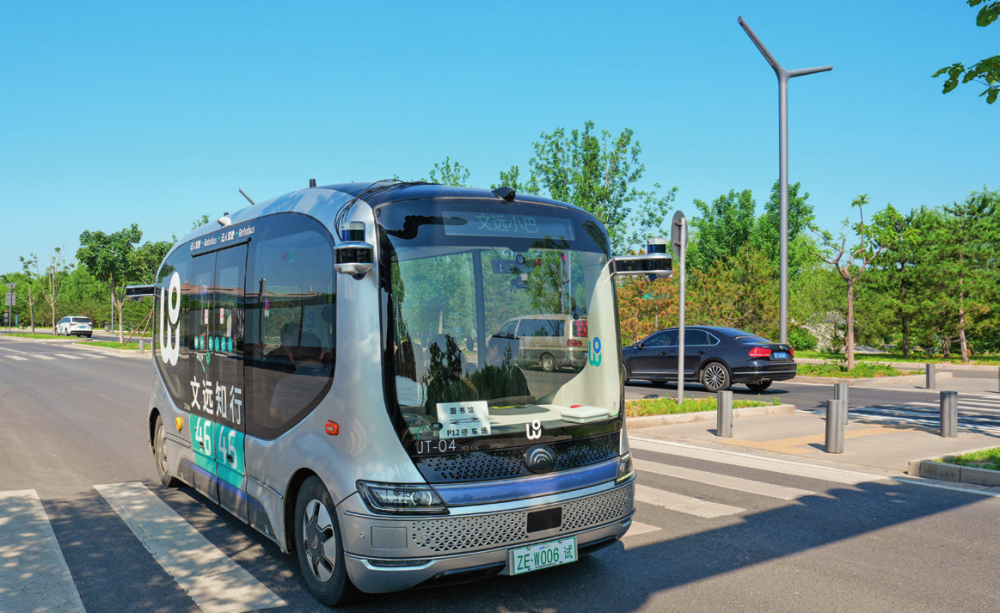 在北京城市副中心,一輛無人駕駛小巴在接送乘客(2024年5月21日攝) 鞠煥宗攝/本刊