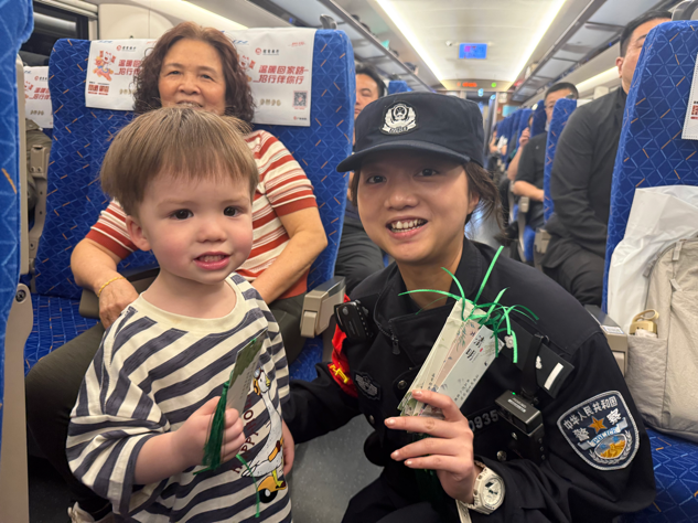 清明假期,旅客返鄉(xiāng)祭掃、踏青出游的出行需求集中,為筑牢旅途安全防線(xiàn),廣東省深圳鐵路公安處“鵬乘楓警”女子乘警組走進(jìn)高鐵列車(chē)車(chē)廂,在假期人流高峰時(shí)期,開(kāi)展安全出行宣傳活動(dòng),用暖心服務(wù)守護(hù)旅客歸途。