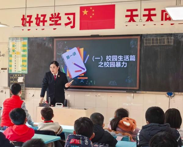 圖為檢察官劉艷麗在普法課堂上引導(dǎo)孩子們對校園欺凌和網(wǎng)絡(luò)犯罪說“不”,讓孩子們在互動中知敬畏、明底線、懂自護(hù)。