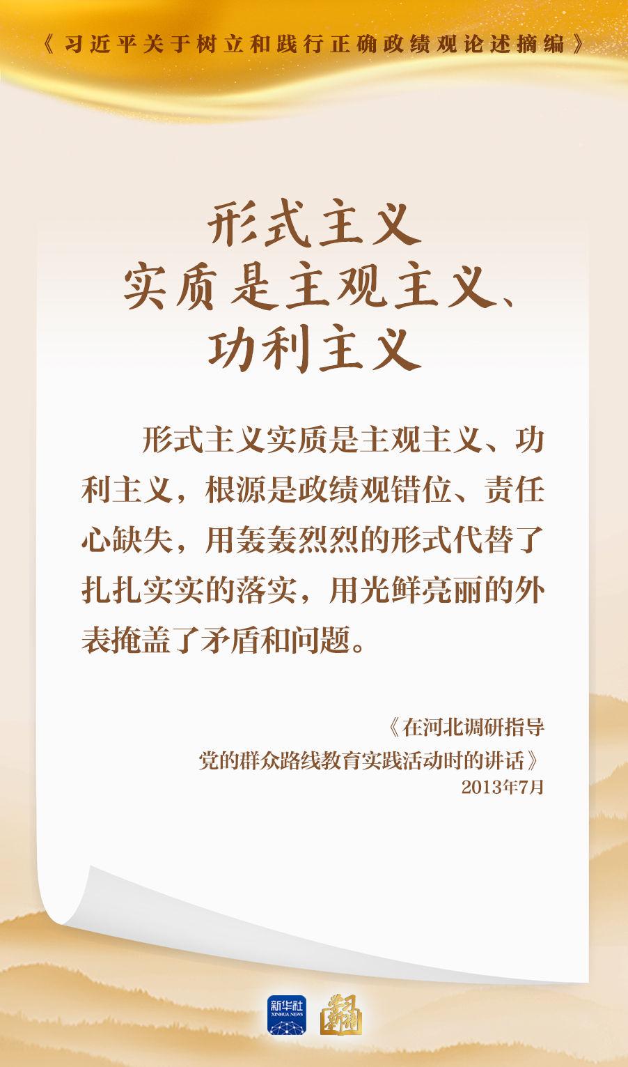 “形式主義實(shí)質(zhì)是主觀主義、功利主義,根源是政績觀錯(cuò)位、責(zé)任心缺失?!绷?xí)近平總書記高度重視加強(qiáng)黨的作風(fēng)建設(shè),針對(duì)反對(duì)形式主義官僚主義等、樹立和踐行正確政績觀作出一系列重要論述。我們選取《習(xí)近平關(guān)于樹立和踐行正確政績觀論述摘編》一書中的相關(guān)論述,一起學(xué)習(xí)領(lǐng)會(huì)。