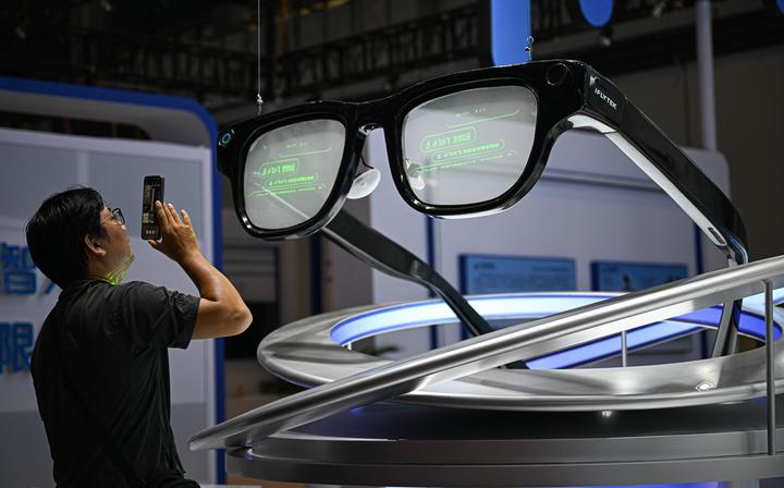 4月10日在第六屆消博會(huì)主會(huì)場拍攝的AI眼鏡模型。新華社記者蒲曉旭 攝