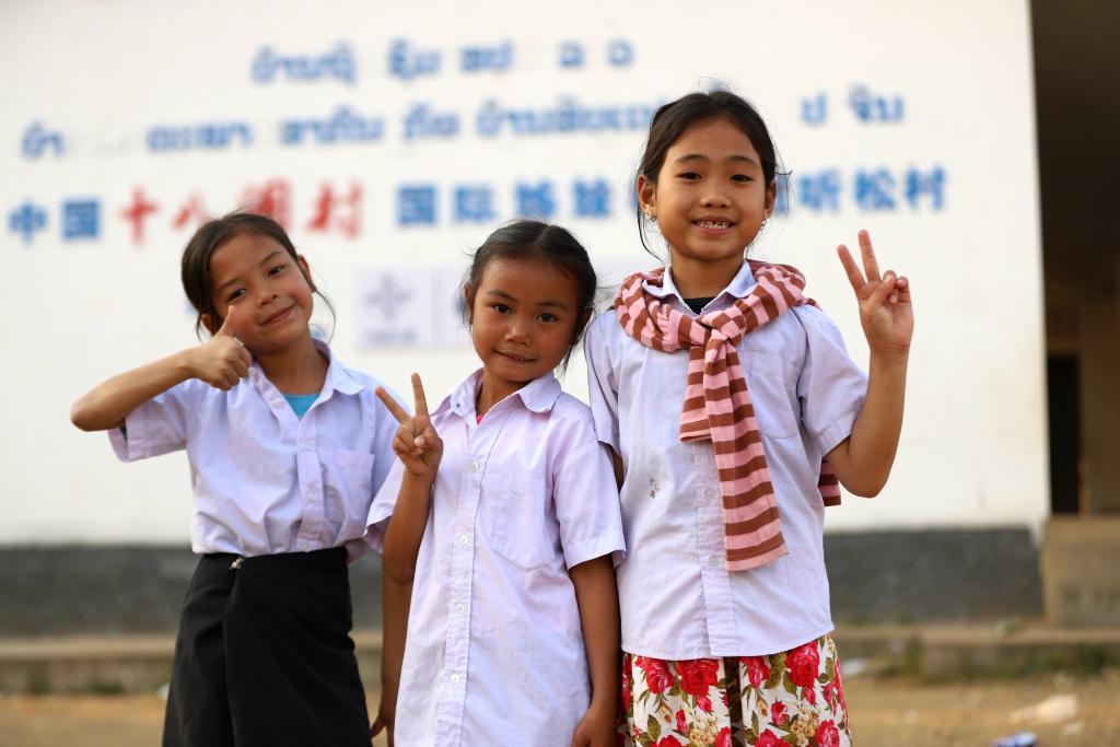 聽(tīng)松村的孩子們?cè)谥匈Y企業(yè)援建的學(xué)校里合影。新華社發(fā) 杜大鵬 攝