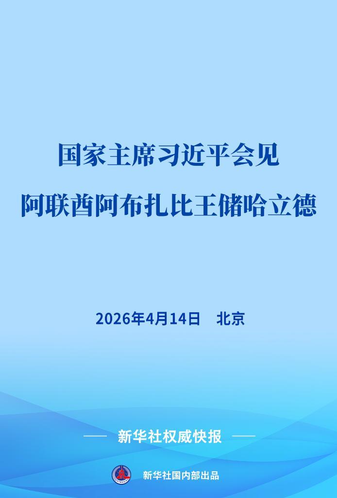 4月14日,國家主席習近平在北京會見來華進行訪問的阿聯(lián)酋阿布扎比王儲哈立德。