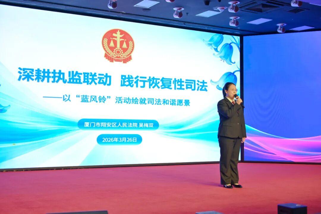 高林在致辭中表示,“藍風鈴”恢復性司法是福建省監(jiān)獄“紅黃藍紫”四色改造工作法之一,是統(tǒng)籌推進教育改造、社區(qū)矯正、安置幫教、糾紛調(diào)解、法治宣傳“五項工作”和踐行新時代“楓橋經(jīng)驗”的重要舉措。福建省司法行政系統(tǒng)要以此次活動為新的起點,加強與法院、檢察院等政法部門溝通聯(lián)系,持續(xù)完善機制,抓好成果轉(zhuǎn)化,推動恢復性司法與監(jiān)獄執(zhí)法辦案、罪犯教育改造、回歸幫扶等工作深度融合,講好福建監(jiān)獄“藍風鈴”恢復性司法故事,切實把工作成果轉(zhuǎn)化為治理效能,為加快建設更高水平平安福建、法治福建作出新的更大貢獻。