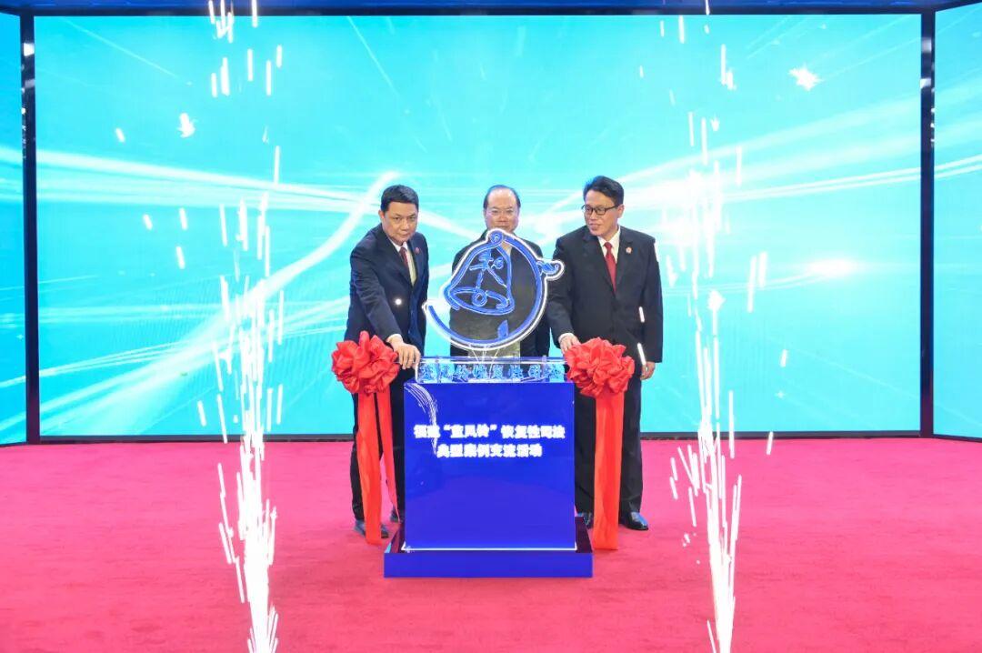 揭牌儀式上,高林、王孔堅、吳世東共同為“藍風鈴”恢復性司法品牌揭牌,點亮象征救贖和新生的品牌標識。來自福建省委政法委、法院系統(tǒng)、檢察系統(tǒng)、司法行政系統(tǒng)、監(jiān)獄系統(tǒng)、福建警察學院有關同志和省市人大代表、執(zhí)法監(jiān)督員、專家學者等90余名嘉賓,共同見證“藍風鈴”恢復性司法工作邁入品牌化、協(xié)同化發(fā)展新階段的重要時刻。