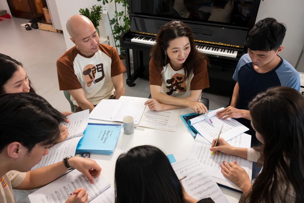越南指揮家童光榮和中國(guó)作曲家莫雙雙是一對(duì)“跨國(guó)伉儷”,兩人聯(lián)手創(chuàng)立了“新活力”樂團(tuán),將越南傳統(tǒng)竹樂和中國(guó)音樂元素融合編排,演繹出新的東方韻味。這是2025年3月28日,童光榮(中左)與莫雙雙(中右)在位于越南首都河內(nèi)的家中為樂團(tuán)成員授課。