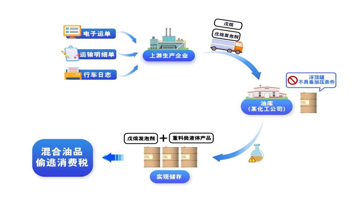 至此,宏堅石化的逃稅手法“一覽無余”:該企業(yè)作為經(jīng)銷企業(yè),從上游采購敏感化工品,在無生產(chǎn)資質(zhì)的情況下,直接將這些原料注入儲罐進行物理混合,產(chǎn)出所謂的“汽油”進行銷售,規(guī)避其作為油品調(diào)和者應承擔的消費稅納稅義務,達到偷逃稅款的目的。