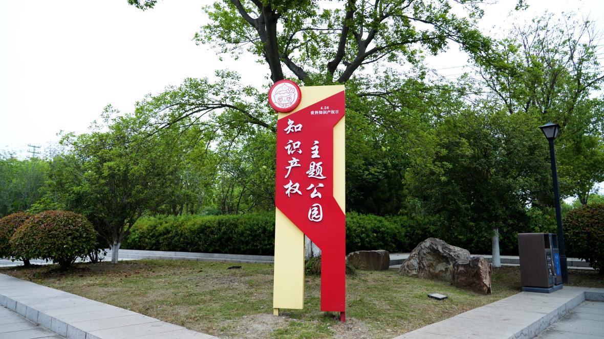 “奶奶,這個是‘知小六’!”跟著李奶奶遛彎的小孫女指著公園內(nèi)隨處可見的卡通形象興奮地說。李奶奶也被這里濃厚的文化氛圍深深吸引,這里不僅綠意盎然,還有知識產(chǎn)權(quán)路燈道旗、手繪文化墻、宣傳牌等。