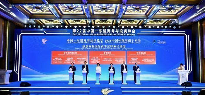 第22屆中國—東盟商務(wù)與投資峰會9月17日—21日在廣西南寧召開,期間中國—東盟商事法律論壇在南寧舉辦?;顒又校腥A人民共和國二級大法官、廣西壯族自治區(qū)高級人民法院院長黃海龍,中國國際貿(mào)易促進委員會副會長李慶霜等嘉賓見證系列合作成果的達成。
