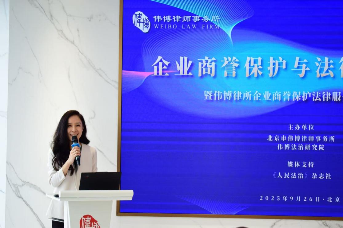 新媒體與AI技術(shù)深度融合的當(dāng)下,虛假評論刷屏、AI謠言擴(kuò)散、競品惡意抹黑等不法行為正成為企業(yè)商譽(yù)的新威脅,傳統(tǒng)保護(hù)手段漸顯乏力,律師對該領(lǐng)域的法律服務(wù)也亟待從“事后補(bǔ)救”轉(zhuǎn)向“全鏈條防控”。在此背景下,北京市偉博律師事務(wù)所(以下簡稱“偉博律所”)、偉博法治研究院于2025年9月26日在北京舉辦企業(yè)商譽(yù)保護(hù)與法律實務(wù)沙龍,并發(fā)布偉博律所企業(yè)商譽(yù)保護(hù)法律服務(wù)產(chǎn)品。