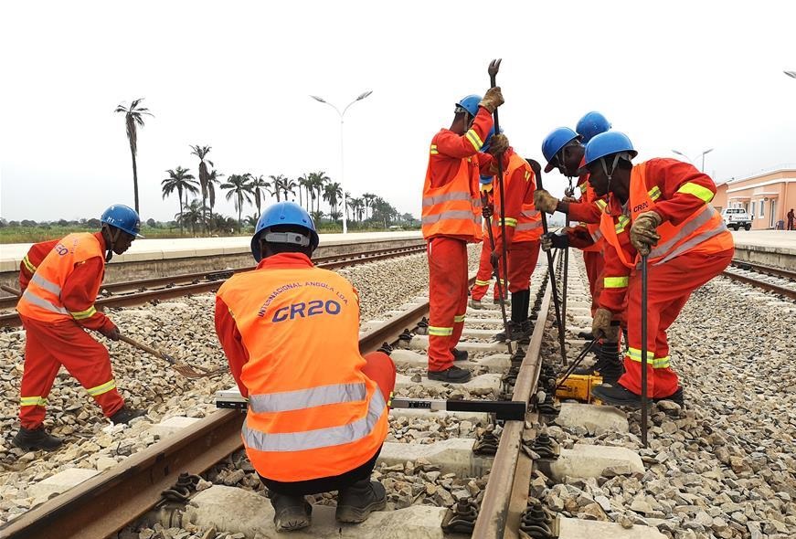 8月2日,在安哥拉洛比托鐵路項目現(xiàn)場,中國中鐵二十局本格拉鐵路項目員工在進(jìn)行鐵路維護(hù)。新華社發(fā)(柳志攝)