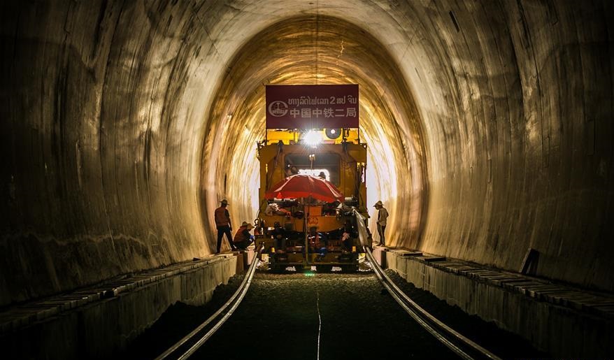 5月23日,在老撾萬象省庚凱村隧道的中老鐵路施工現(xiàn)場(chǎng),中老兩國(guó)工人協(xié)力鋪軌。 隨著每排14根軌枕按照規(guī)定距離平穩(wěn)鋪過庚凱村隧道,500米長(zhǎng)鋼軌隨著牽引機(jī)穩(wěn)準(zhǔn)落定,中老鐵路鋪軌23日通過第一座隧道,從老撾首都萬象一路向北。 新華社發(fā)(凱喬攝)