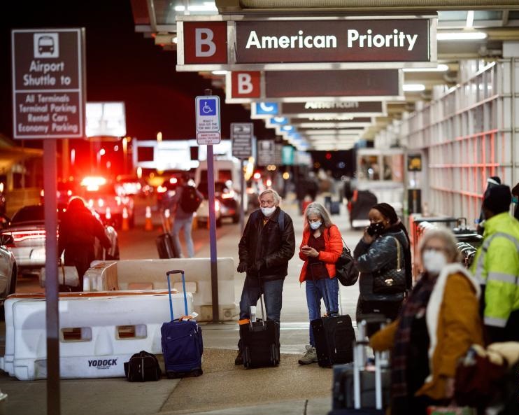 12月23日,在美國弗吉尼亞州阿靈頓的羅納德·里根華盛頓國家機(jī)場,旅客在航站樓外等出租車。新華社發(fā)(沈霆 攝)