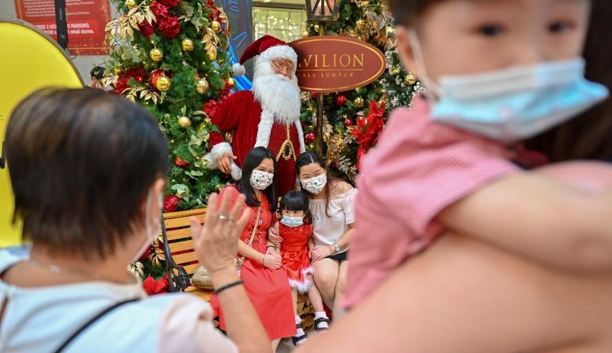 12月24日,在馬來(lái)西亞吉隆坡,人們戴著口罩逛商場(chǎng)。
