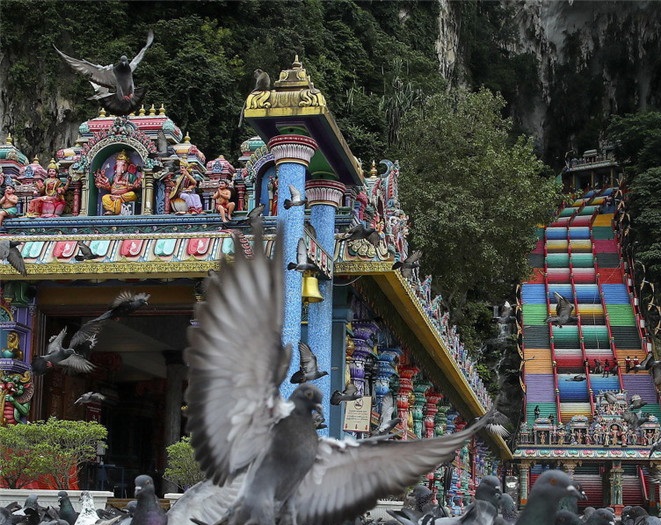 馬來西亞著名景點(diǎn)黑風(fēng)洞游客稀少 階梯色彩繽紛如彩虹般絢爛--國(guó)際--人民網(wǎng)