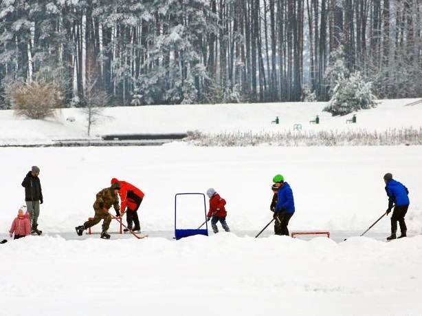 1月13日,人們在白俄羅斯首都明斯克一個公園打冰球。
