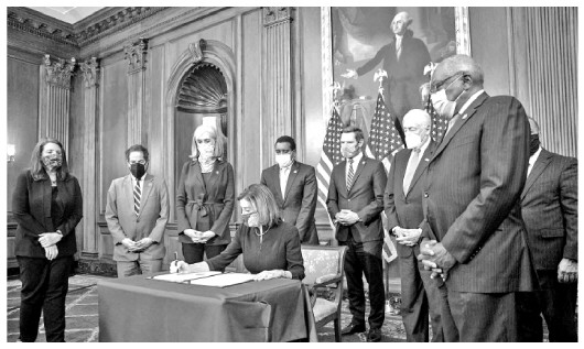 此次彈劾距離特朗普上次遭到彈劾,僅過去一年多的時間。上次彈劾緣起于特朗普要求烏克蘭總統(tǒng)調(diào)查競選對手拜登,此次則是因為“煽動支持者叛亂”。彈劾條款還指出,特朗普多次發(fā)表虛假聲明,干涉權(quán)力的和平過渡,嚴(yán)重危及美國國家和政府機(jī)構(gòu)安全,給美國人民造成明顯傷害,如任其繼續(xù)執(zhí)政,將對國家安全、民主和憲法構(gòu)成威脅。