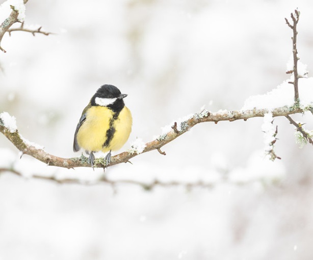 英國(guó)威爾士迎來(lái)大雪 鳥(niǎo)兒佇立枝頭靜如畫