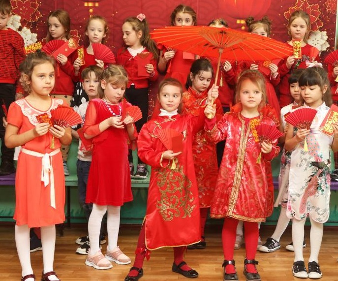 2月15日,學(xué)生在烏克蘭基輔第一東方語(yǔ)言學(xué)校參加慶祝春節(jié)活動(dòng)。