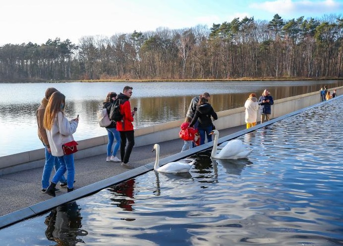 比利時(shí)林堡省波克萊克附近有一條200多米長、從水塘中間穿過的特別通道。人們走在其中時(shí)視線剛好與水面齊平,宛如在水中穿行。這一獨(dú)特的體驗(yàn)吸引了眾多徒步和騎行愛好者。