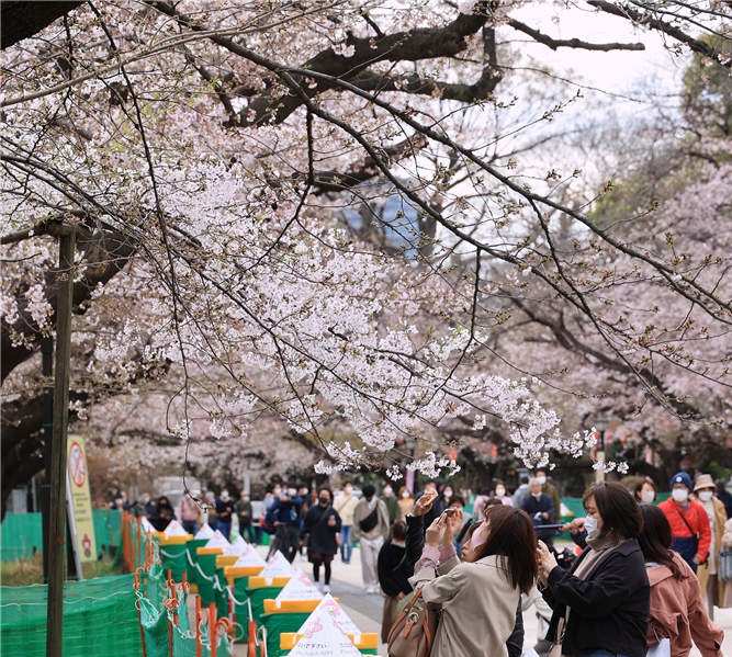人民網(wǎng)訊 當(dāng)?shù)貢r(shí)間3月22日,日本東京,當(dāng)?shù)貦鸦ㄊ㈤_,吸引不少民眾前來賞櫻。