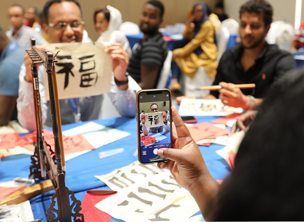 當(dāng)日,在吉布提非洲青年創(chuàng)新創(chuàng)業(yè)中心,吉布提孔子學(xué)院老師為來自吉布提、埃賽俄比亞、肯尼亞、烏干達(dá)的非洲創(chuàng)業(yè)青年上了一堂生動的中國文化課。風(fēng)俗、書法、剪紙等中國文化引起了學(xué)員們的廣泛興趣。