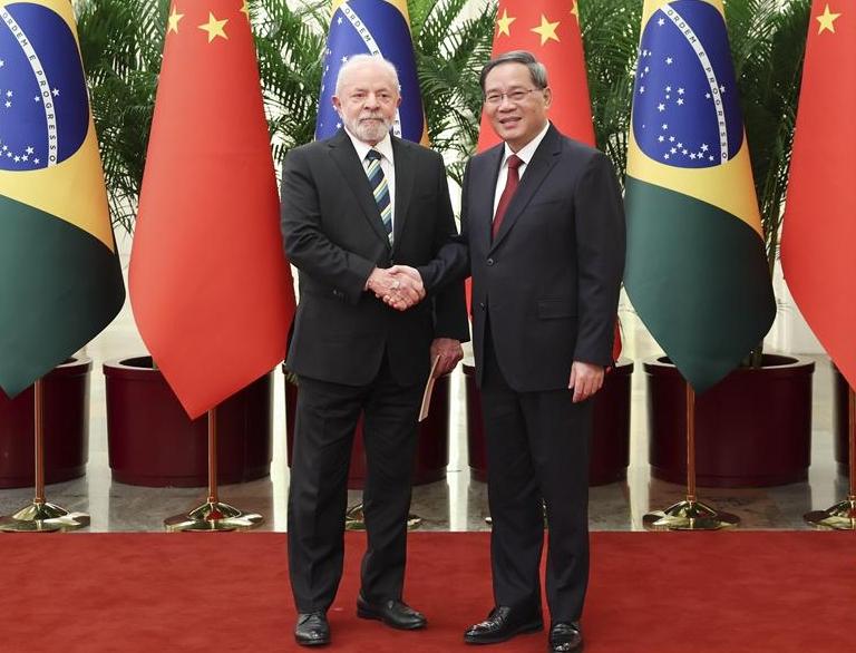 國務(wù)院總理李強(qiáng)4月14日下午在人民大會堂會見來華進(jìn)行國事訪問的巴西總統(tǒng)盧拉。