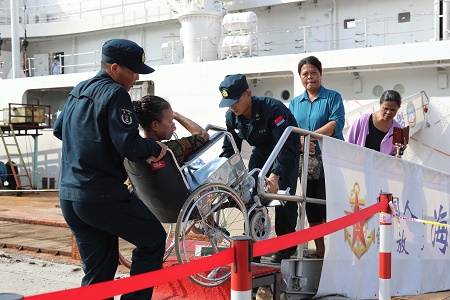 中國海軍“和平方舟”號醫(yī)院船訪問東帝汶并開展醫(yī)療服務(wù)期間,醫(yī)院船官兵為當(dāng)?shù)匦袆硬槐愕幕颊叻?wù)(9月6日攝)。新華社發(fā)(桂江波 攝)