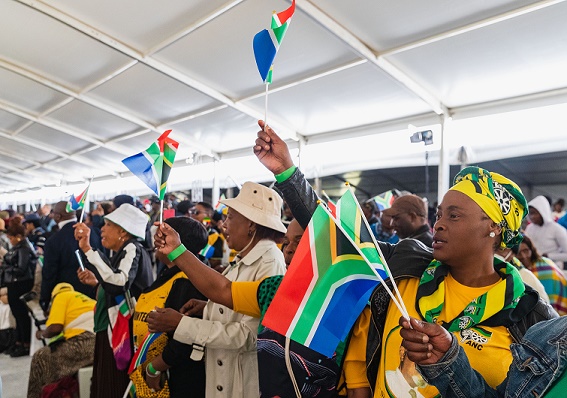 4月27日,在南非行政首都比勒陀利亞,民眾參加自由日慶祝典禮。新華社記者 張譽東 攝