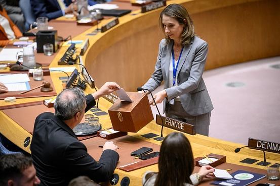 5月27日,在位于紐約的聯(lián)合國總部,聯(lián)合國安理會投票補(bǔ)選國際法院法官。新華社發(fā)(聯(lián)合國供圖/洛伊·費(fèi)利佩攝)
